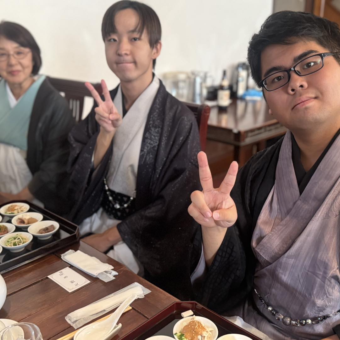 パーティー用の着物に着替えてドレスアップして会場はとても華やかになりました。