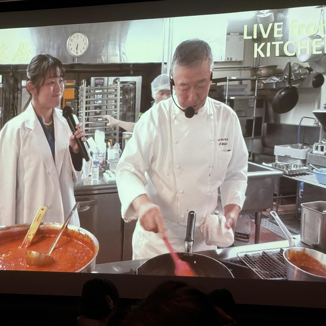 日本一予約の取れないイタリア料理店の落合努シェフをお招きしてクリスマスディナーを作っていただきました。厨房からの中継もあり、落合シェフが作りながら料理の説明をしてくださる贅沢な空間。出てきた料理がより一層美味しく感じられました。